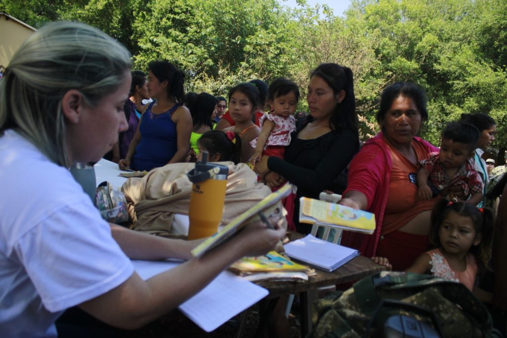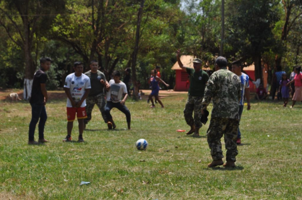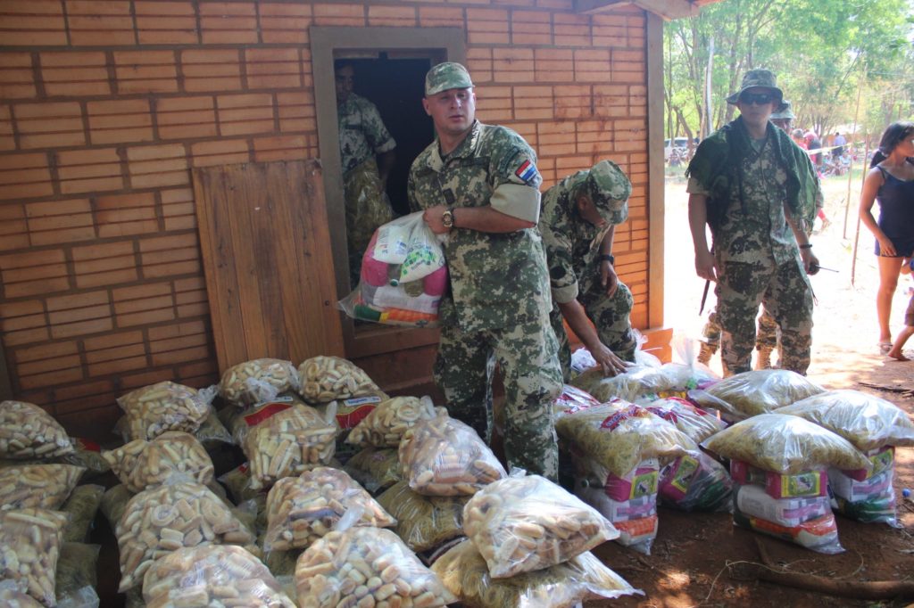 Personal de la Prefectura de Zona del Este y de la Reserva Naval Activa Centro Número 10 Teniente Fariña, brindaron asistencia a la comunidad indígena Paso Cadena – Itakyry, Departamento del Alto Paraná, realizando atención médica odontológica, entrega de kits alimenticios, juguetes, atuendos y servicios de peluquería para la comunidad indígena
